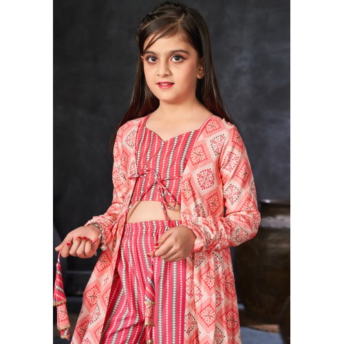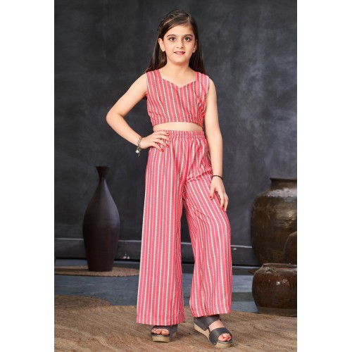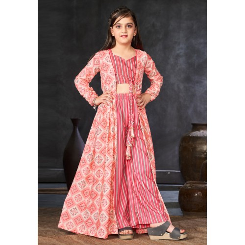 Pink Rayon Readymade Kids Palazzo With Jacket 285076