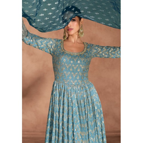 Sky Blue Georgette Embroidered Long Anarkali Suit 307572