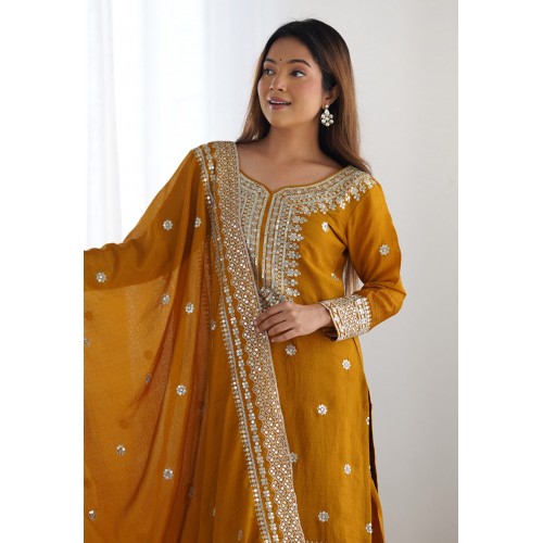 Mustard Chinon Silk Readymade Sharara Suit 305829
